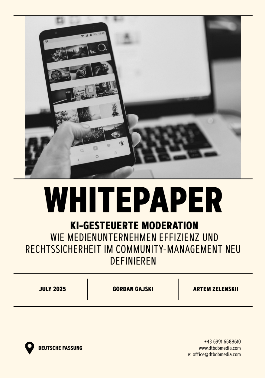Wir senden ihnen gerne unser neues White Paper "KI automatisierte Moderations-, Foren und Community Lösungen für Medien"